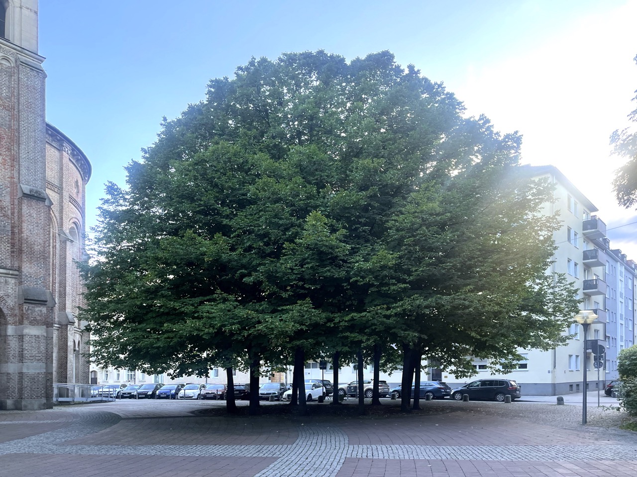 12 Linden an der Zahl wachsen hier im Kreis gepflanzt wunderbar demokratisch zusammen und bilden Lebensraum für unzählige Tiere, bis zu ca. 1300 verschiedene Arten pro Baum. Behauptet zumindest ChatGPT.