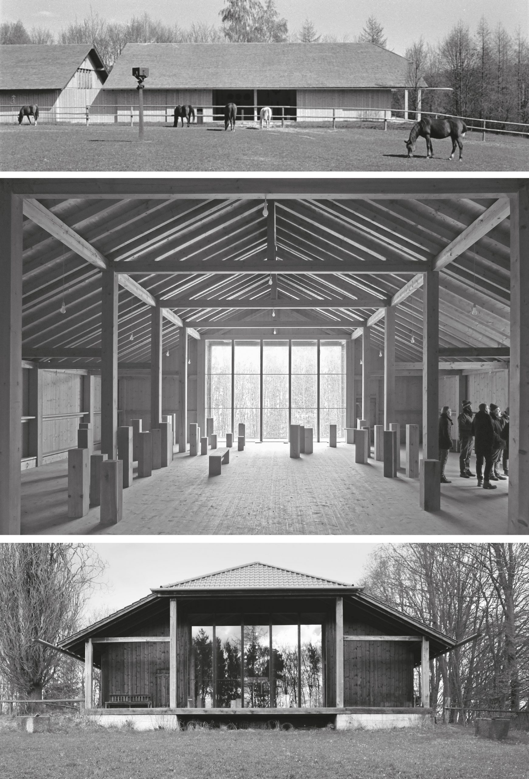 Um dem Wohnhaus einen gewissen Schutz vor dem Geräuschpegel zu gewähren, wurden am Rand der Waldkoppel von Koenig, zusammen mit dem Architekten Joachim Zangenberg, zwei Holzhallen, mit je 22 Metern Länge und 14 Metern Breite, errichtet: Eine stützenfreie Rosshalle als überdachter Bewegungsraum für die Pferde und spiegelbildlich dazu findet sich eine gleich große, dreischiffige, fast sakral wirkende, „Afrikahalle“ später so genannt. Der landesübliche Pfettendachstuhl wurde unterstützt durch jeweils sieben Pfeiler. Die Halle benützte Koenig zur Aufstellung und Präsentation seiner umfangreichen Sammlungen afrikanischer und anonymer Kunst, deren Anfänge bereits in seine Studienzeit zurückreichen.