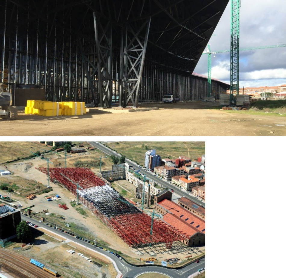 Bei dem Projekt, das ich hier vorstellen möchte, handelt es sich um ein Messe- und Konferenzzentrum, das allerdings derzeit noch im Bau ist. Die Renovierung der alten Zuckerfabrik, in der im Wettbewerb unter anderem ein Auditorium geplant war, ist auch Teil der Gesamtanlage. Die Baustelle dauert jetzt schon viel länger als ursprünglich vorgesehen, trotzdem wird es konstant gebaut und die Messehalle soll tatsächlich irgendwann auch mal fertig werden. Für die Renovierung der Zuckerfabrik fehlt jetzt allerdings das Geld. Die Bauverzögerung hängt natürlich mit der spanischen Baukrise zusammen. Nur durch die längeren Laufzeiten der Kredite war das Projekt überhaupt zu finanzieren. Dass sie die Realisierung überhaupt schaffen, ist schon eine große Leistung für die kleine Stadt, denn zwischendurch war das Projekt nahe am Abgrund. Die Leóneses, so heißt es, sind Kämpfer.