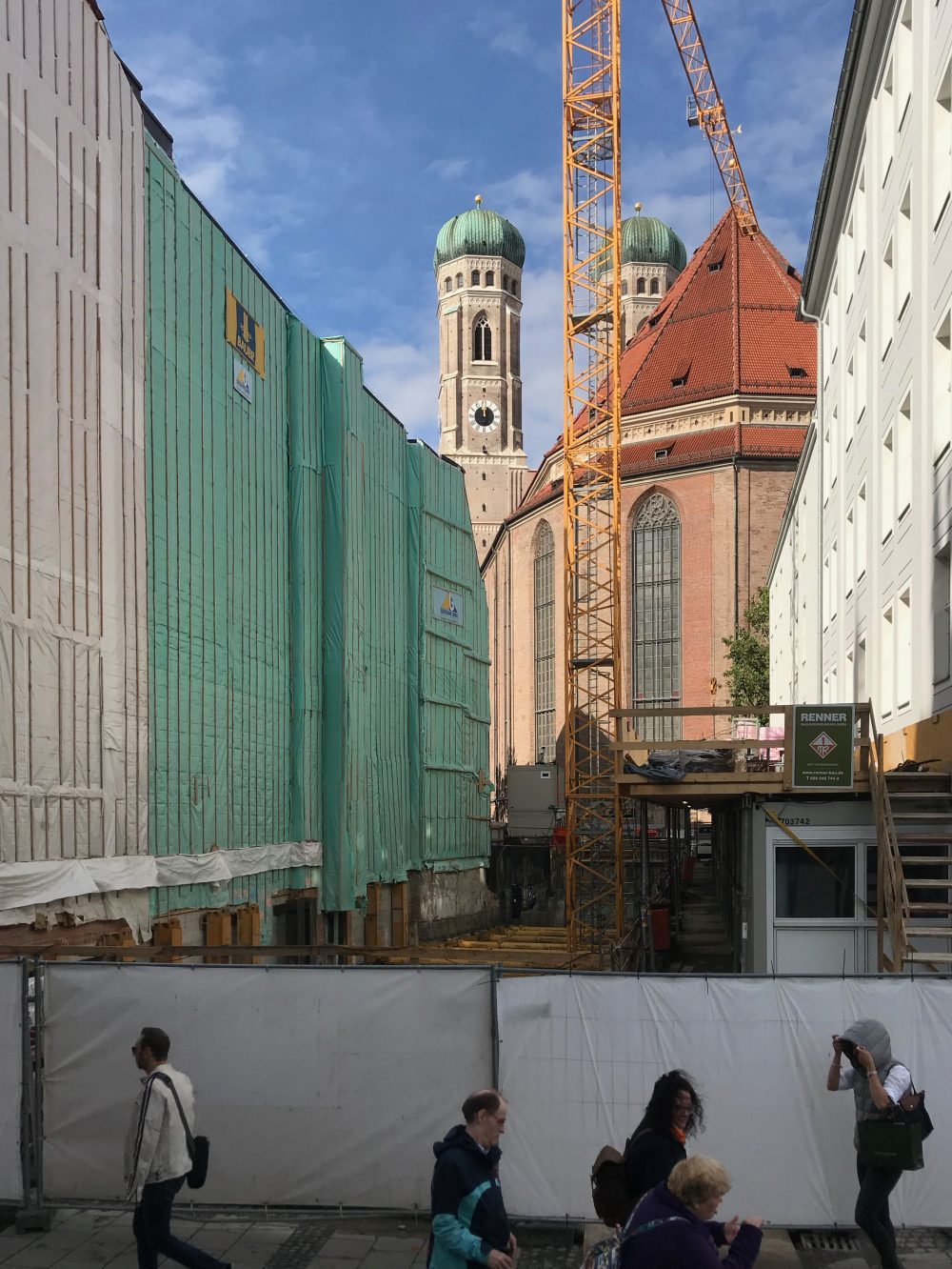 An der Weinstrasse, Ecke Filserbräugasse ist momentan wegen einer Baustelle ein freier Blick auf den Chor der Frauenkirche zu bewundern. Ein Blick, der sonst von Häusern versperrt wird. So wird die Wucht der Baumasse Frauenkirche mal aus einem anderen Blickwinkel sichtbar.