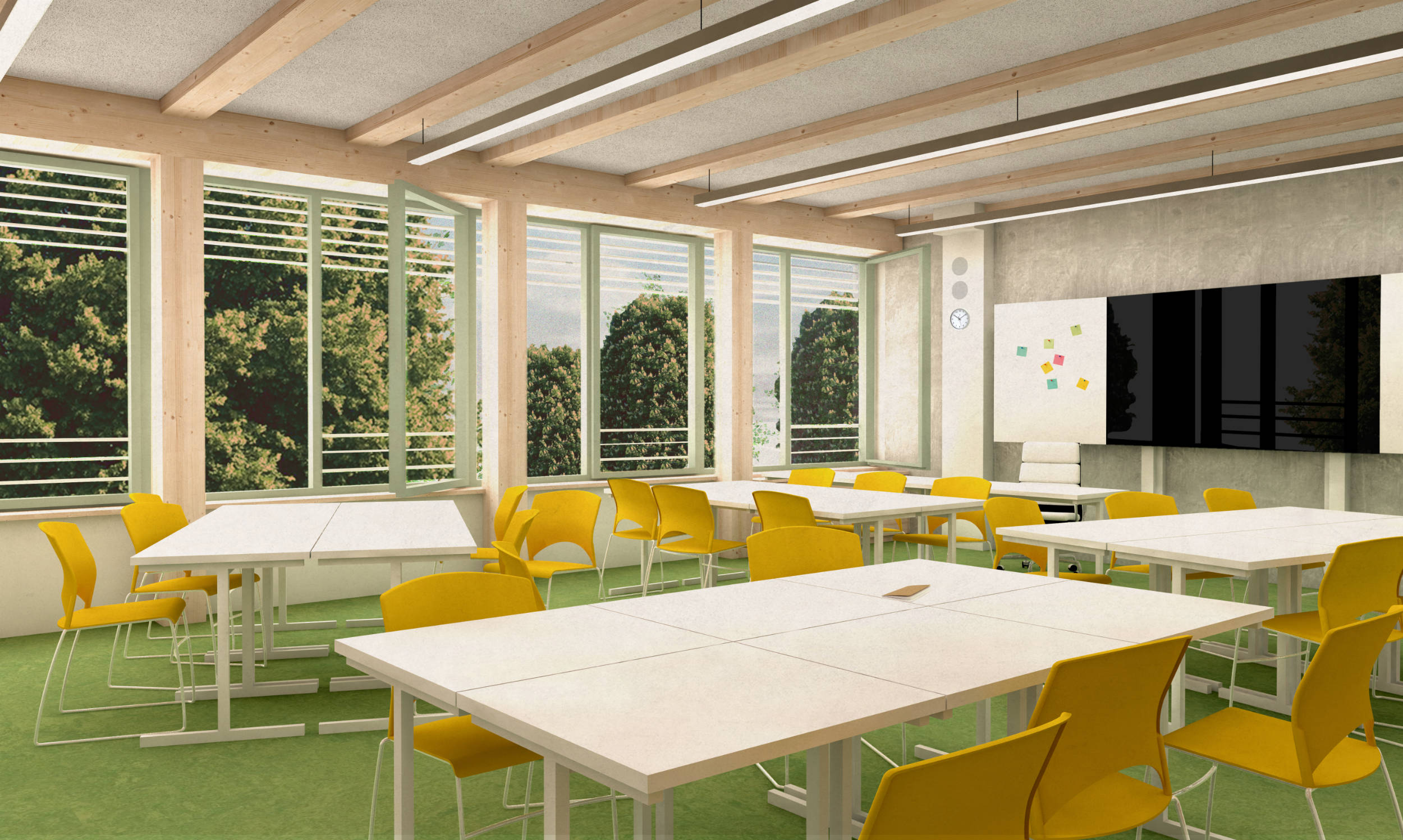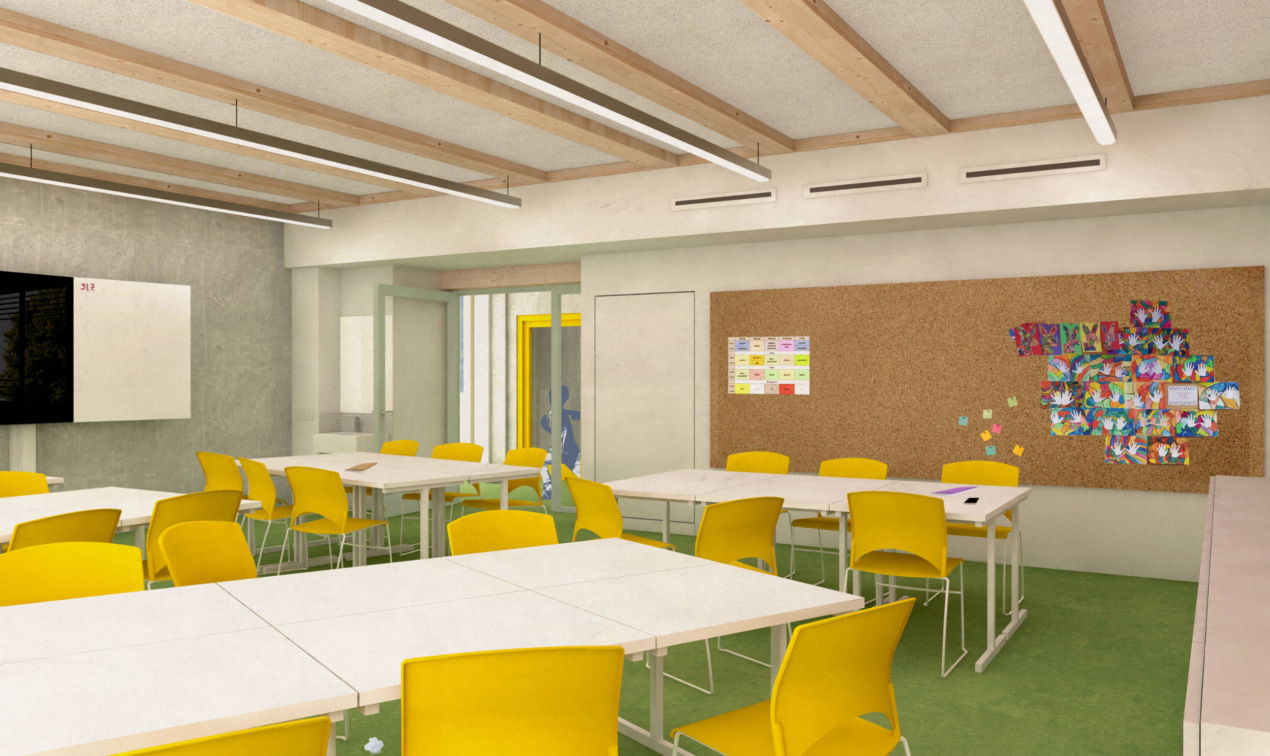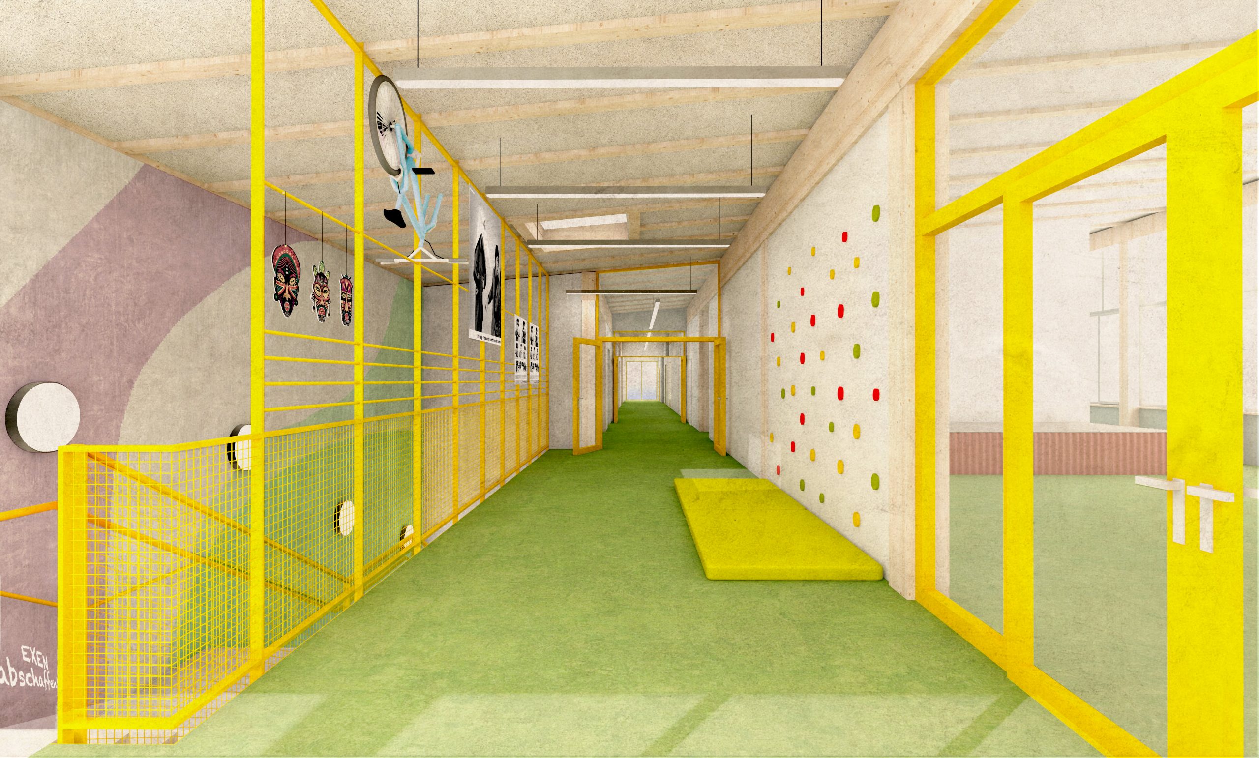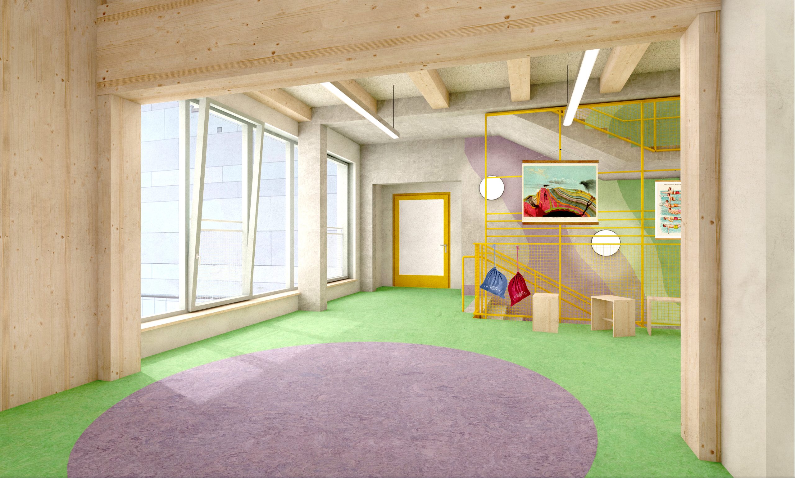 Die Mittelschule St.Ruppert in Freilassing soll einen neuen Anbau erhalten. Durch steigende Schülerzahlen und einen Bedarf an Ganztagesbetreuung soll der Standort nachverdichtet werden. Unser Entwurf sieht einen Hybridbau vor. Durch die Vorfertigung der Fassaden- und Deckenelemente und einer getaktete Anlieferung, ist eine schnelle Montage möglich.