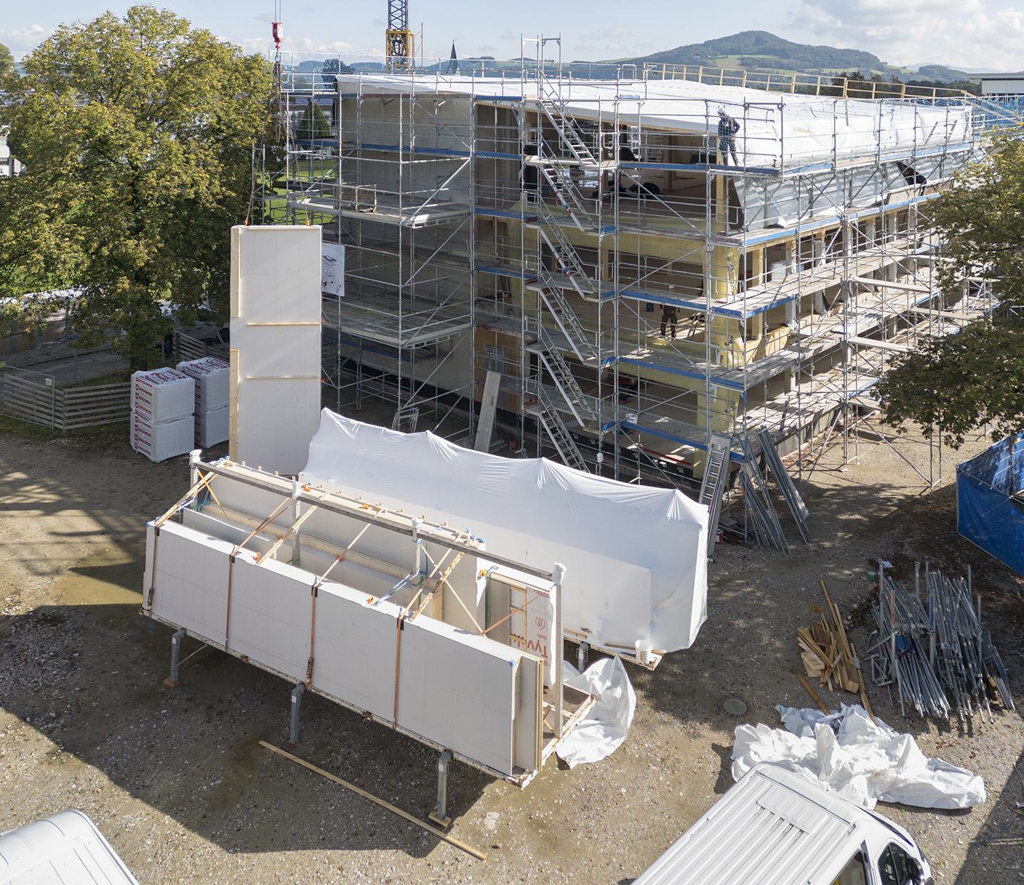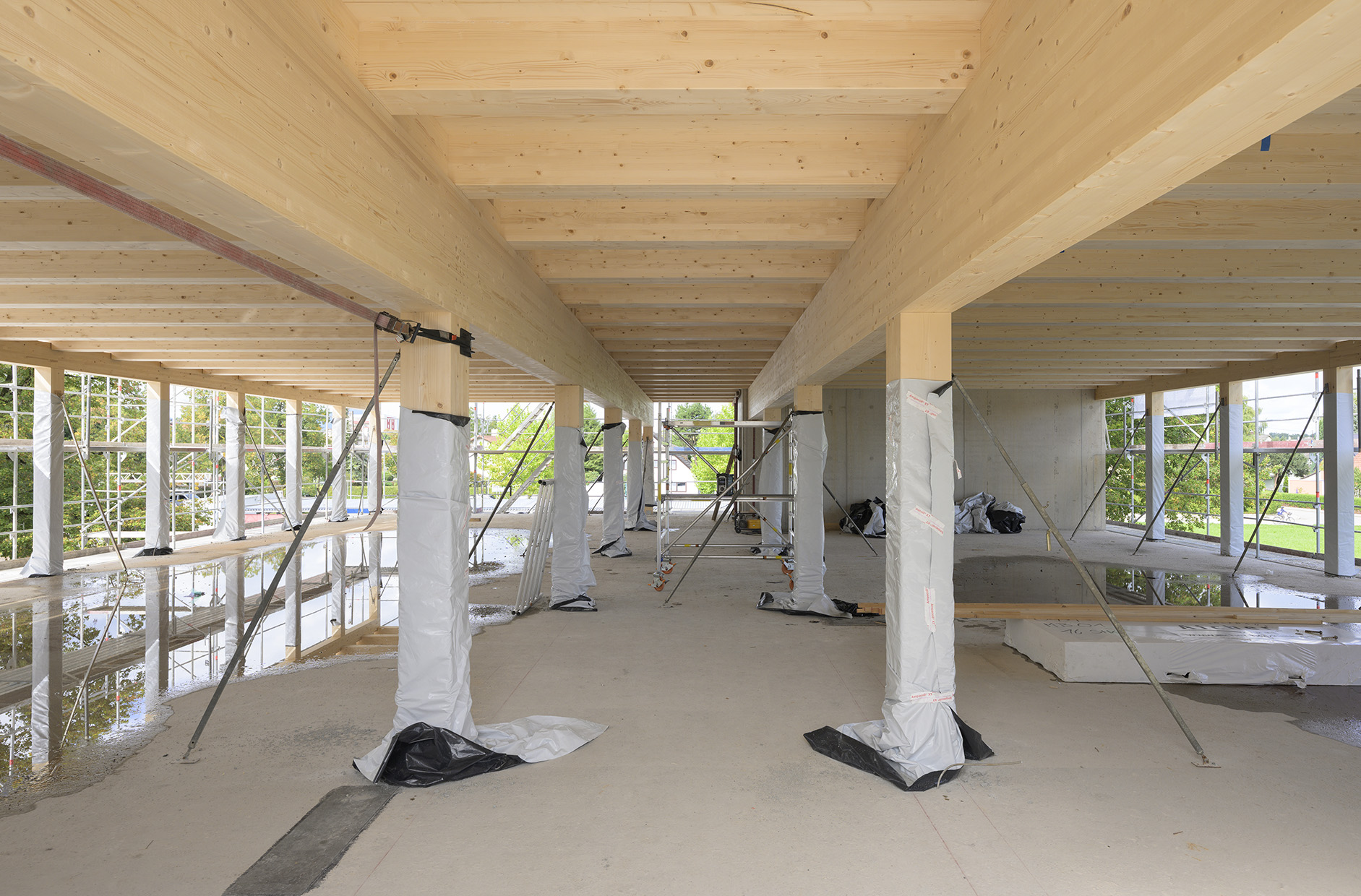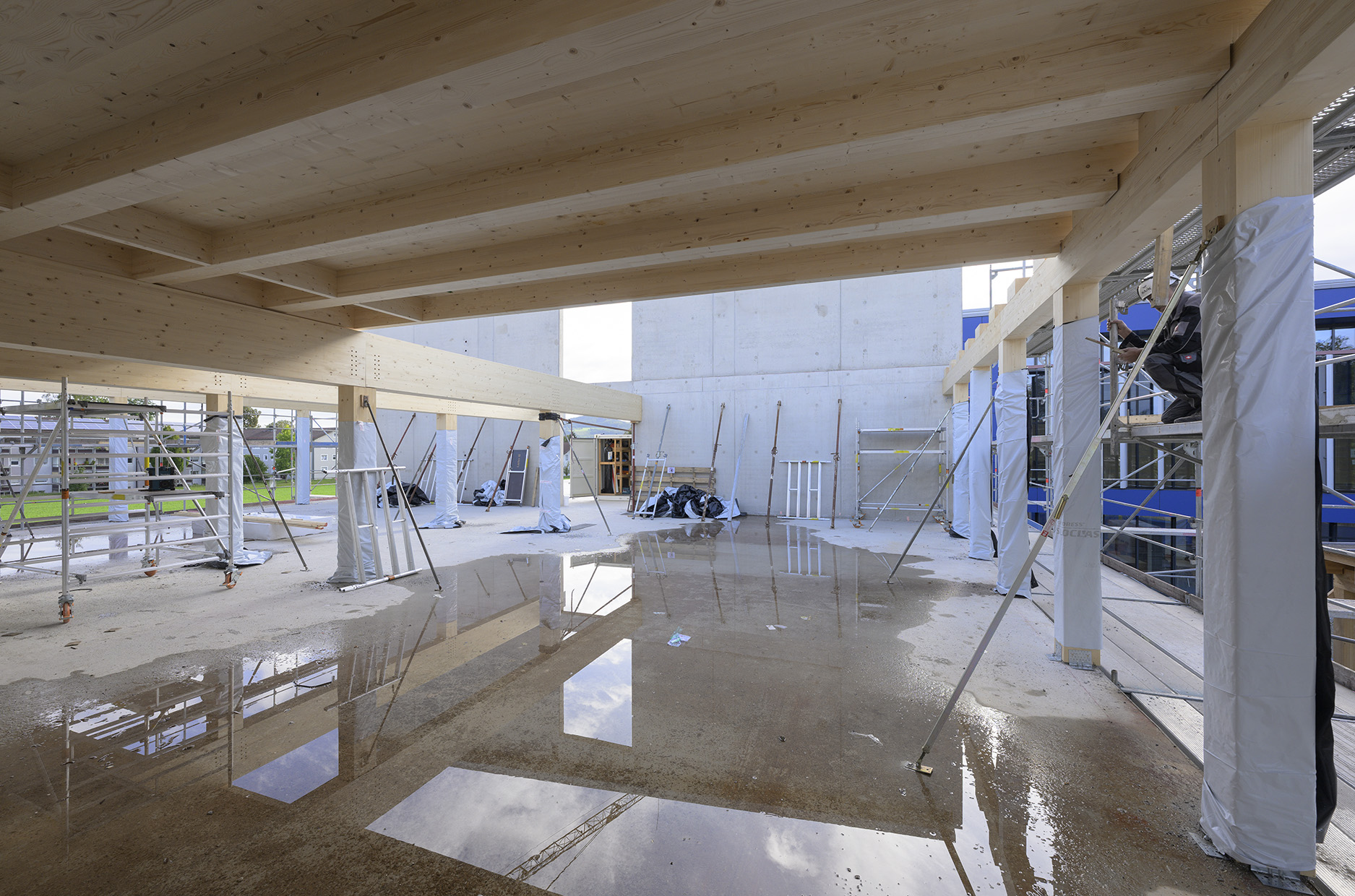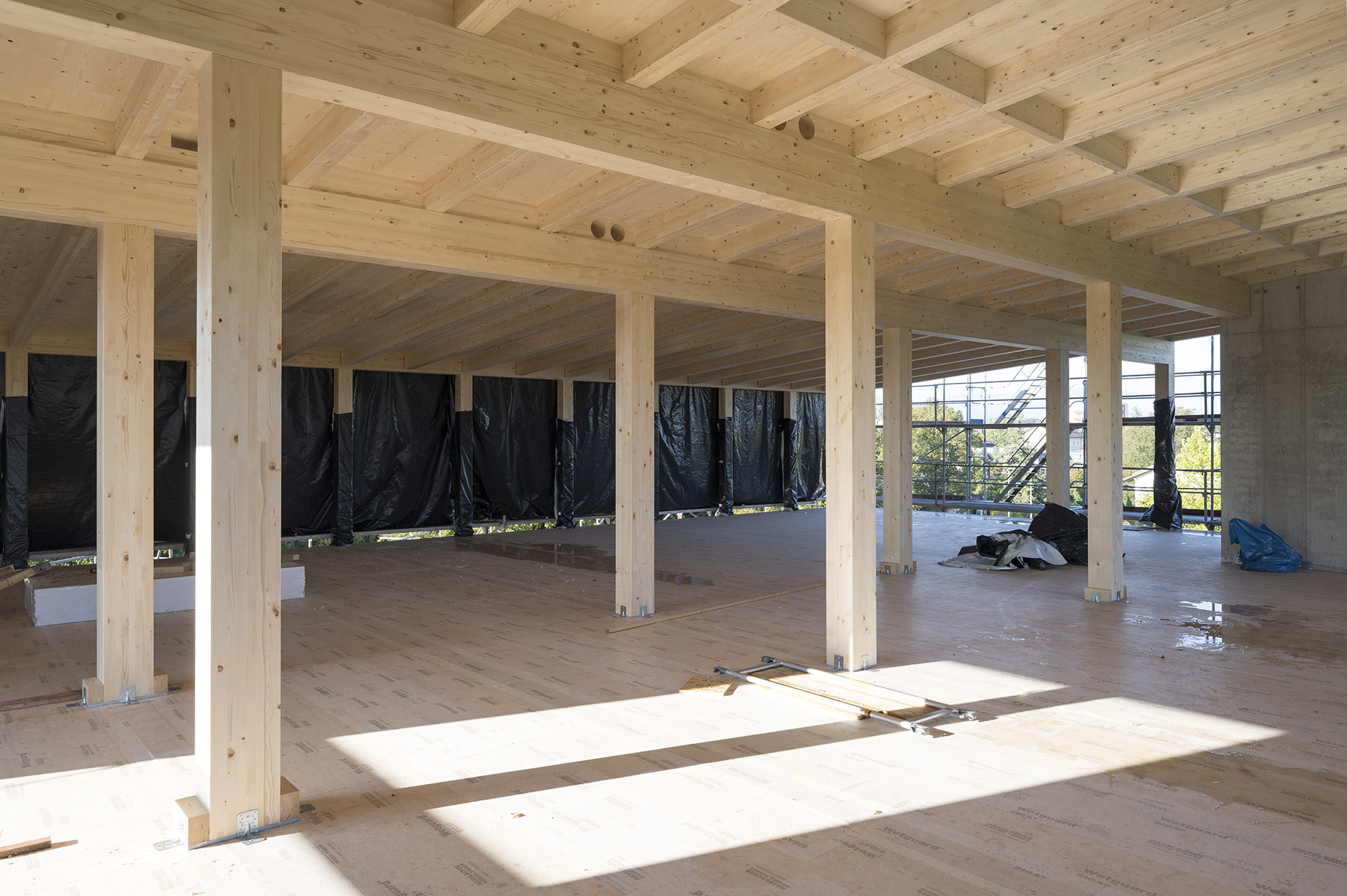 Ein Rundflug über die Holzbauarbeiten kann hier angeschaut werden.
