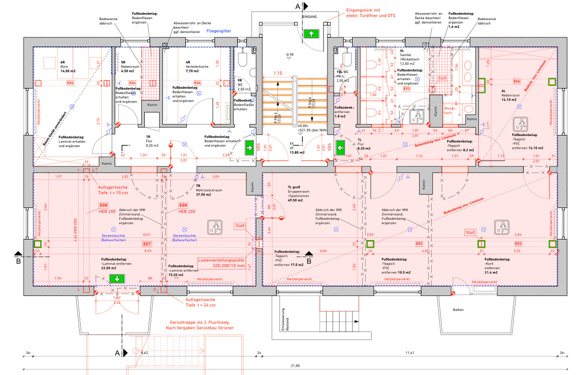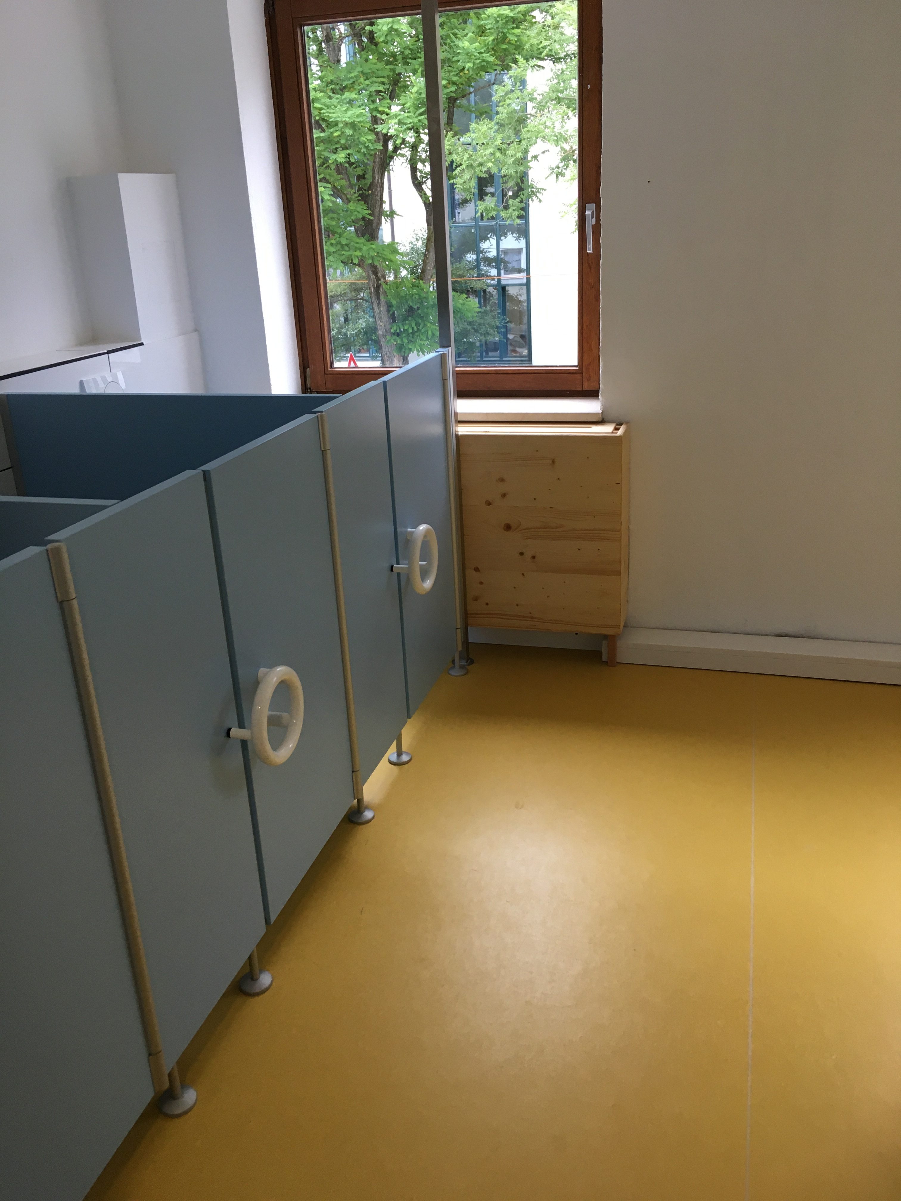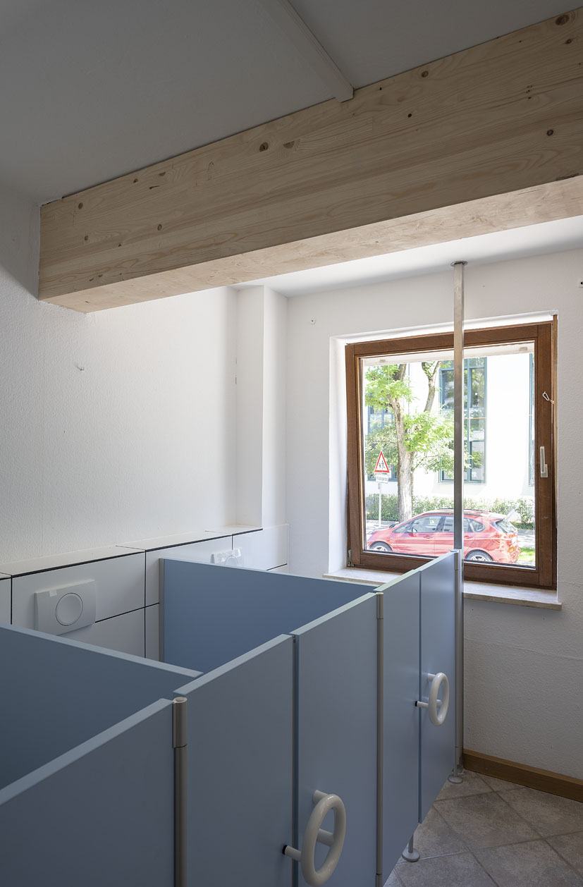 Schnell und als Übergangslösung sollte das Betriebswohngebäude kurzerhand zur KITA-Einrichtung umgewandelt werden. Das erforderte kreative Maßnahmen, die Sicherheitsvorschriften mussten genauso wie für Dauerlösungen eingehalten werden. In einem wahren Sprint konnten wir die Termine und auch die Kosten halten. Die Idee der „Unperfektion“ hat uns hierbei sehr geholfen. Das Ergebnis war überraschend positiv. Fast könnte man sagen: „Jedem Pragmatismus wohnt ein Zauber inne“.