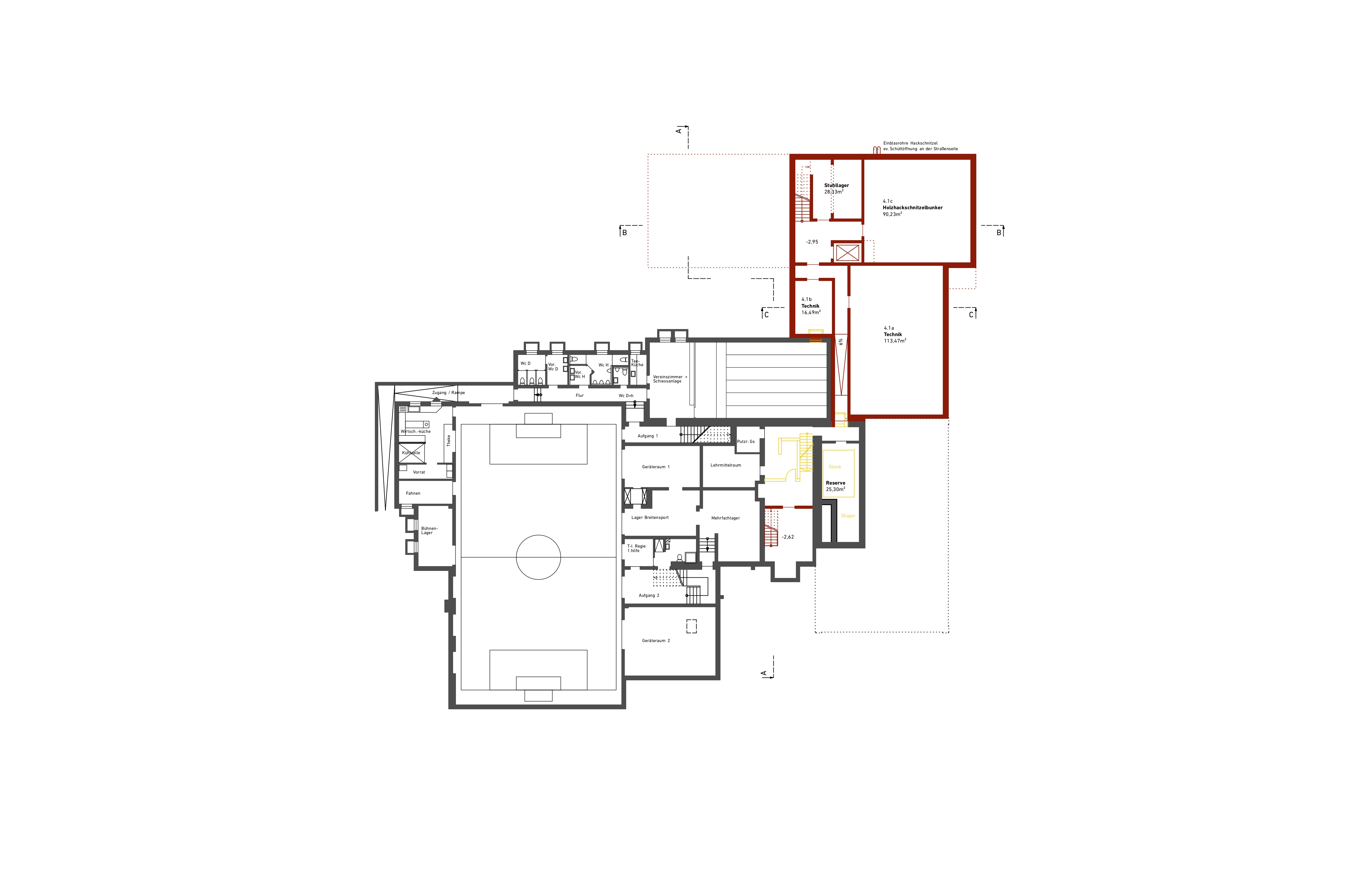 Der Entwurf ist so konzipiert, dass die Umbaumaßnahmen im Bestand auf ein geringes Maß reduziert werden.