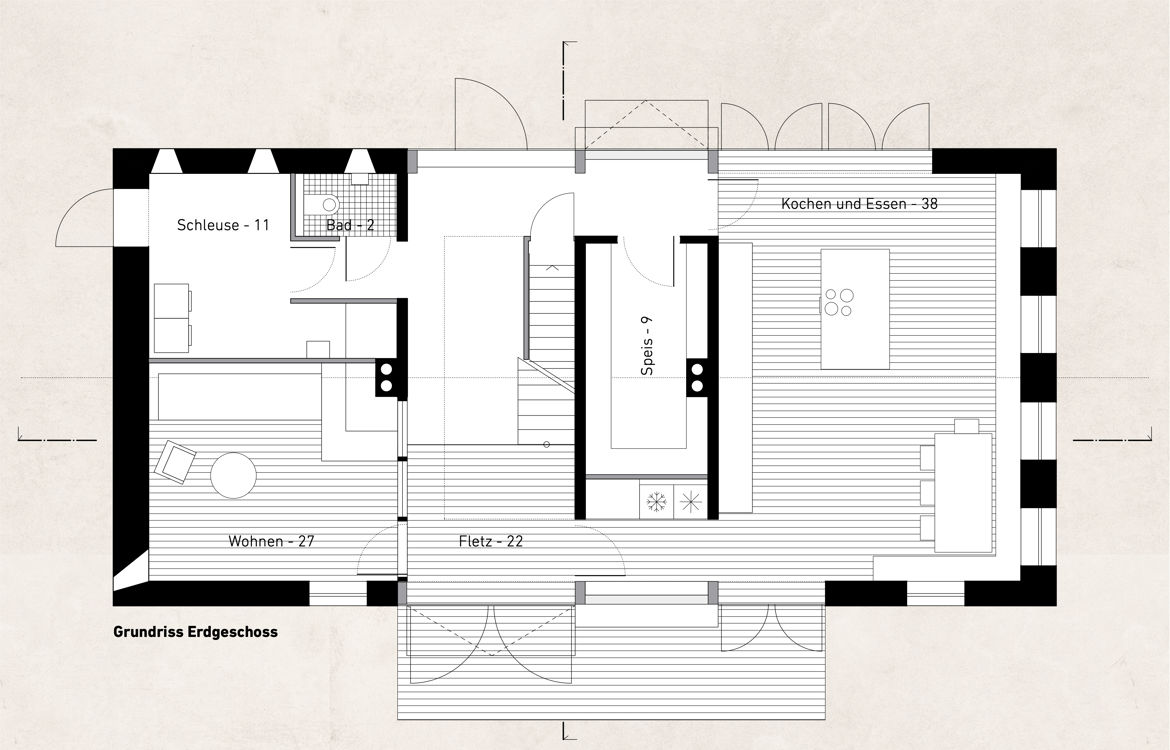 Für ein junges Paar sollte auf dem elterlichen Dreiseithof in Niederbayern ein großzügiges Einfamilienhaus entworfen und errichtet werden. In klarer Verwandtschaft zum fertiggestellten Bauernhaus im Vilstal (2017) wurde auch hier die Typologie und Konstruktion der niederbayrischen Höfe studiert und in eine Zeitgenössigkeit überführt. Die regional-typische Bautradition, welche beispielsweise den Holzbau mit dem Massivbau kombiniert, verhilft dem Bau zu seinem Ausdruck und verankert ihn in seinem Kontext. Das es hierbei nicht um die reine Übernahme einer Tradition ging, sondern unser Interesse aus der Konstruktion und ihrer Bedeutung für zeitaktuelle Themen wie der Ressourcenschonung und Materialgerechtigkeit geweckt wurde, sollte klar werden. Fragen nach Dauerhaftigkeit, Einfachheit und Effizienz standen hier im Vordergrund. In spannendem Dialog mit den Bauherren entstand dieses Projekt und regt uns auch in Zukunft zur fortlaufenden Beschäftigung mit den reichhaltigen Bauten auf dem Lande an.