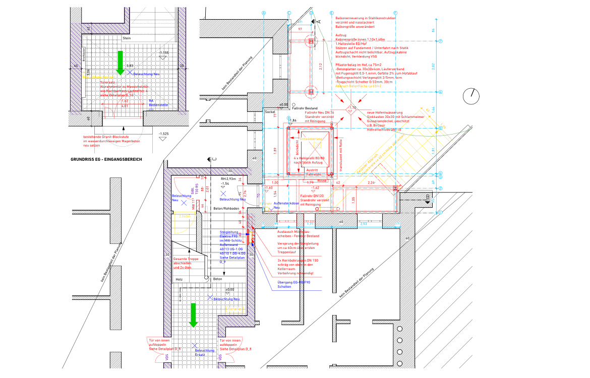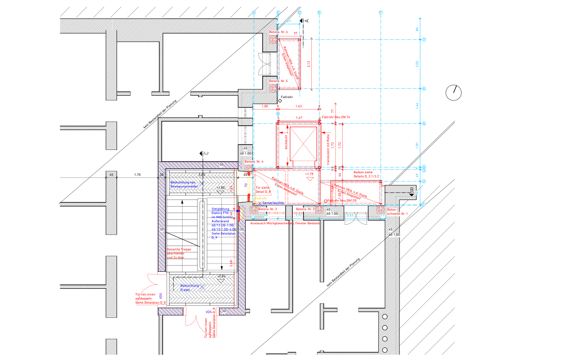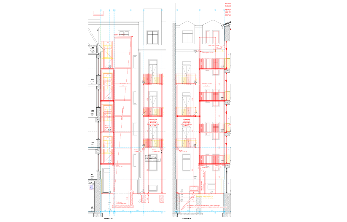 Ein neuer Aufzug im Hinterhof und neue Balkone sind für die Mieter geplant. Im Zuge dessen wird auch das bestehende Treppenhaus saniert.