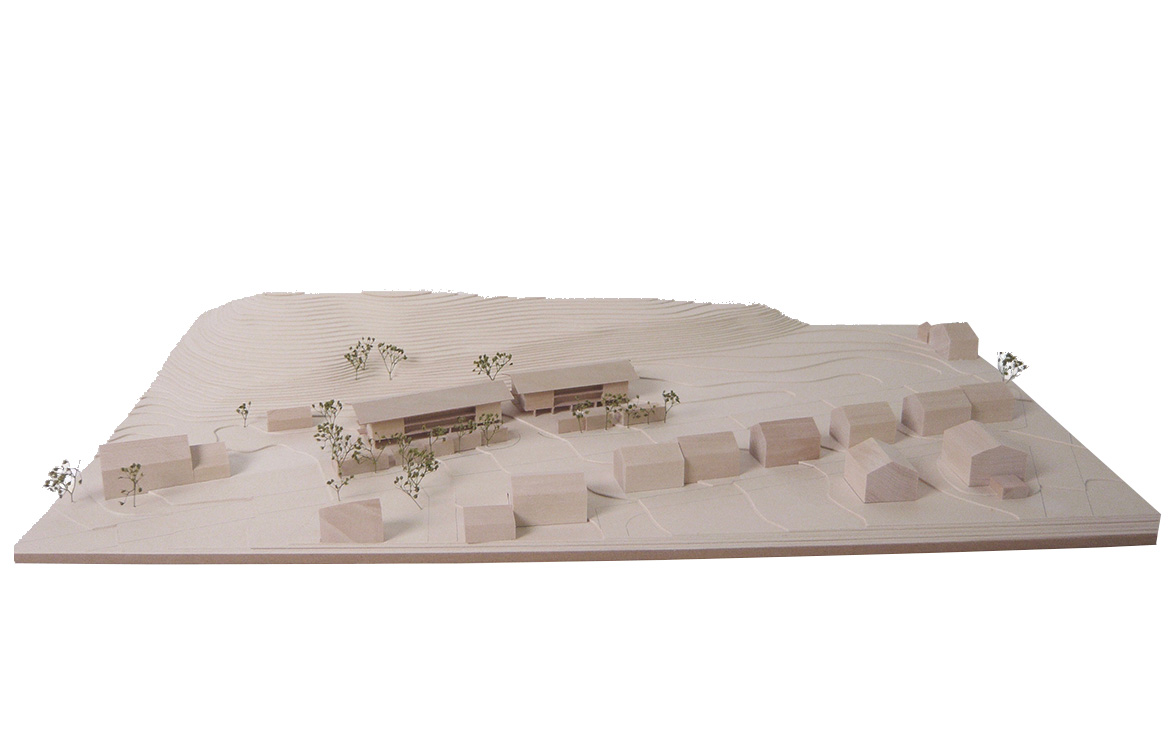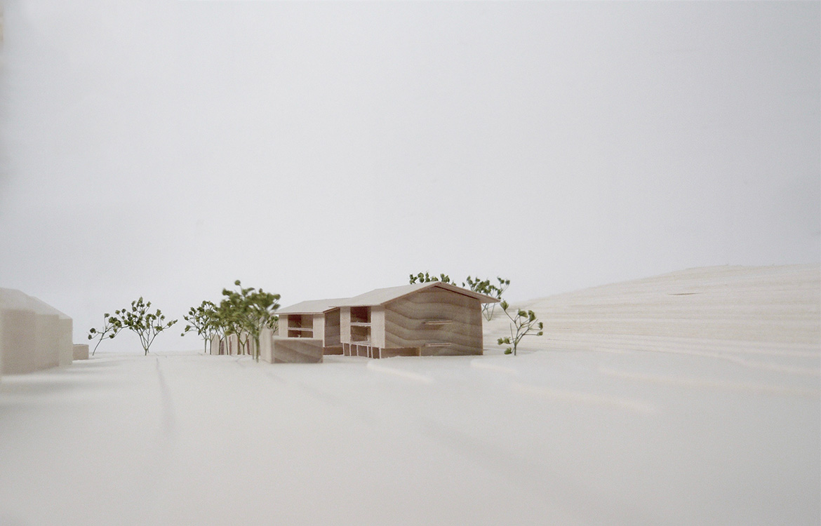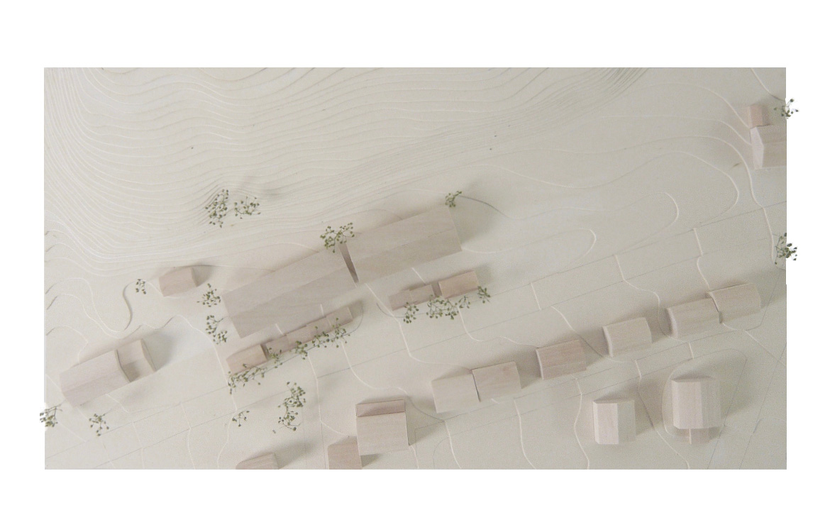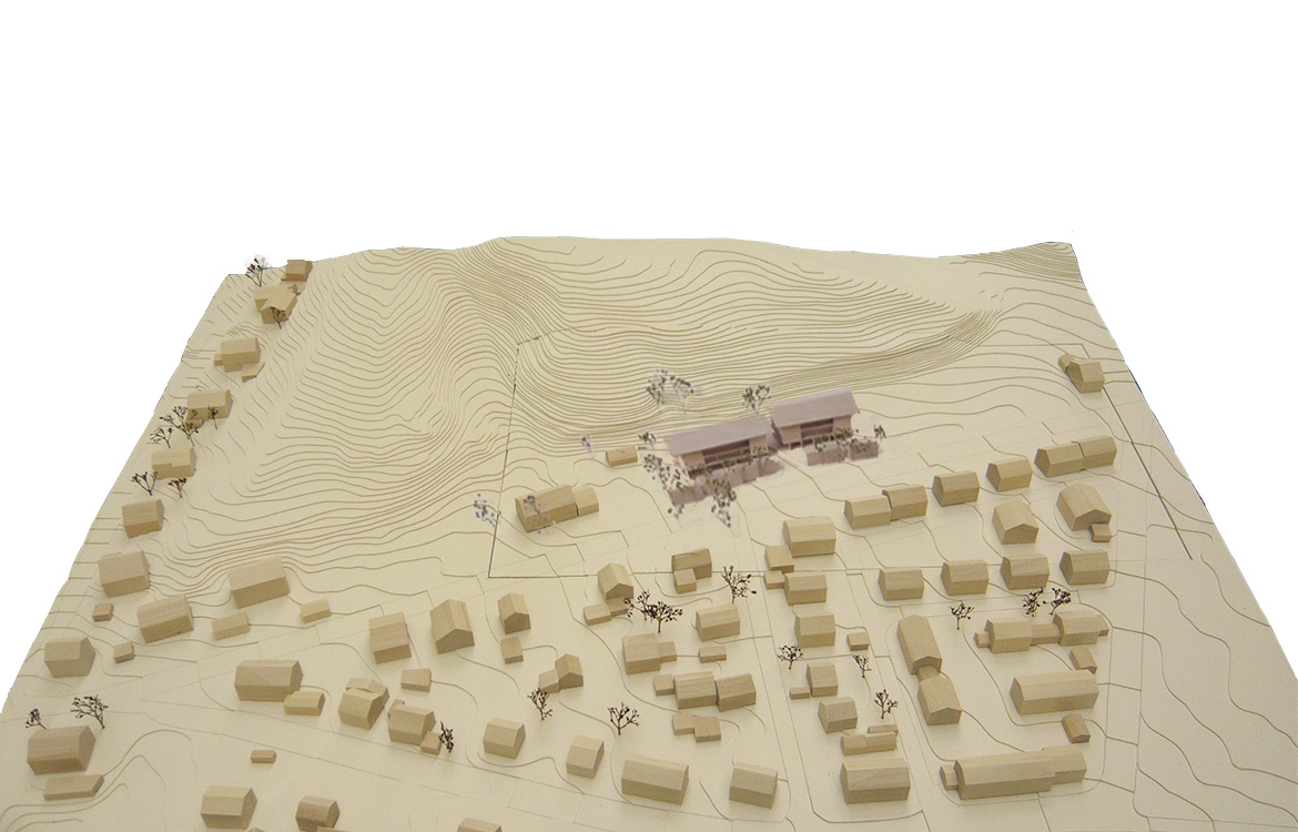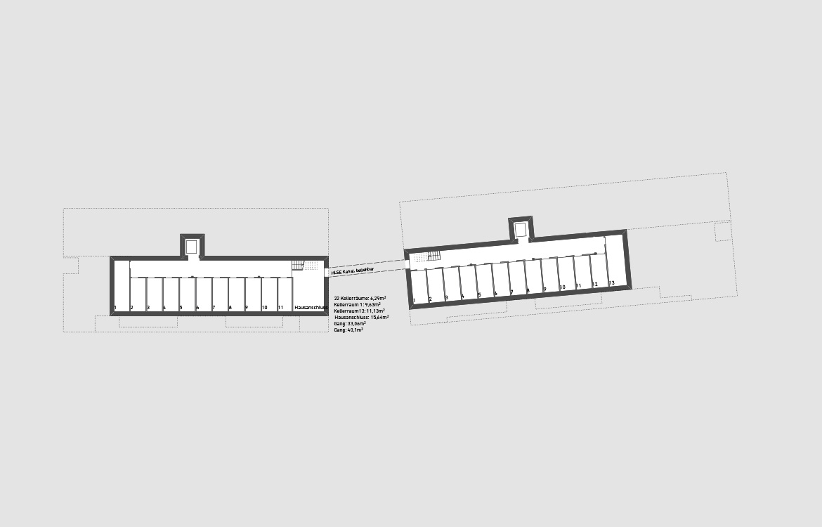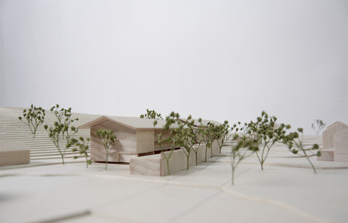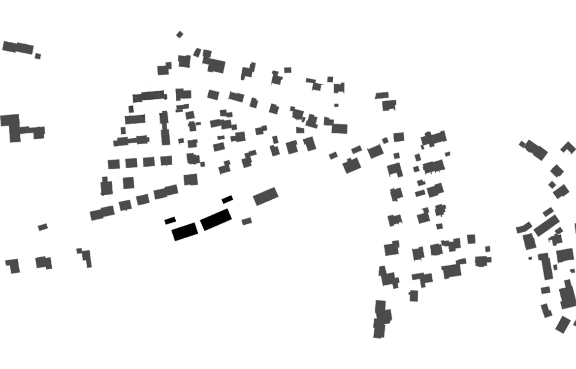 Die beiden Häuser nehmen die stadträumliche Linie des östlich angrenzenden Bauernhofes auf und schaffen eine klare Raumkante zur südlich angrenzenden Landschaft. Der „Wirtschaftshof“, der von den Wohnhäusern und den Carports bzw. Garagen entlang der Lärmschutzwand gefasst wird, dient als Erschliessungshof. Südlich der Häuser organisieren sich die Terrassen und Gärten der Wohnungen zur Landschaft hin. Die innere Organisation der Häuser richtet sich nach den schallschutztechnischen Anforderungen, die aus den Lärmemissionen der Beslerstrasse resultieren. Unser Konzept schlägt eine Laubengangtypologie vor, die das o.g. Problem geschickt umgeht. Die Aufenthaltsräume werden über die Giebelseiten und die Südseiten belichtet. Das nach Norden hin „unbewohnbare“ EG übernimmt die Funktion der PKW-Stellplätze. Die Organisation der Häuser als 4- bzw. 5-Spänner und die Ausbildung des 1. und 2.OG als Regelgeschoss gewährleistet eine wirtschaftliche Umsetzung des Projektes. Durch die oberirdische Anordnung der Stellplätze kann der Bau einer teuren Tiefgarage entfallen. Die Einsparungen, die über die strukturelle Konzeption der Häuser realisiert werden, können in die von uns vorgeschlagene und in den örtlichen Bauvorschriften geforderte Materialität und Gestaltung der Häuser investiert werden.