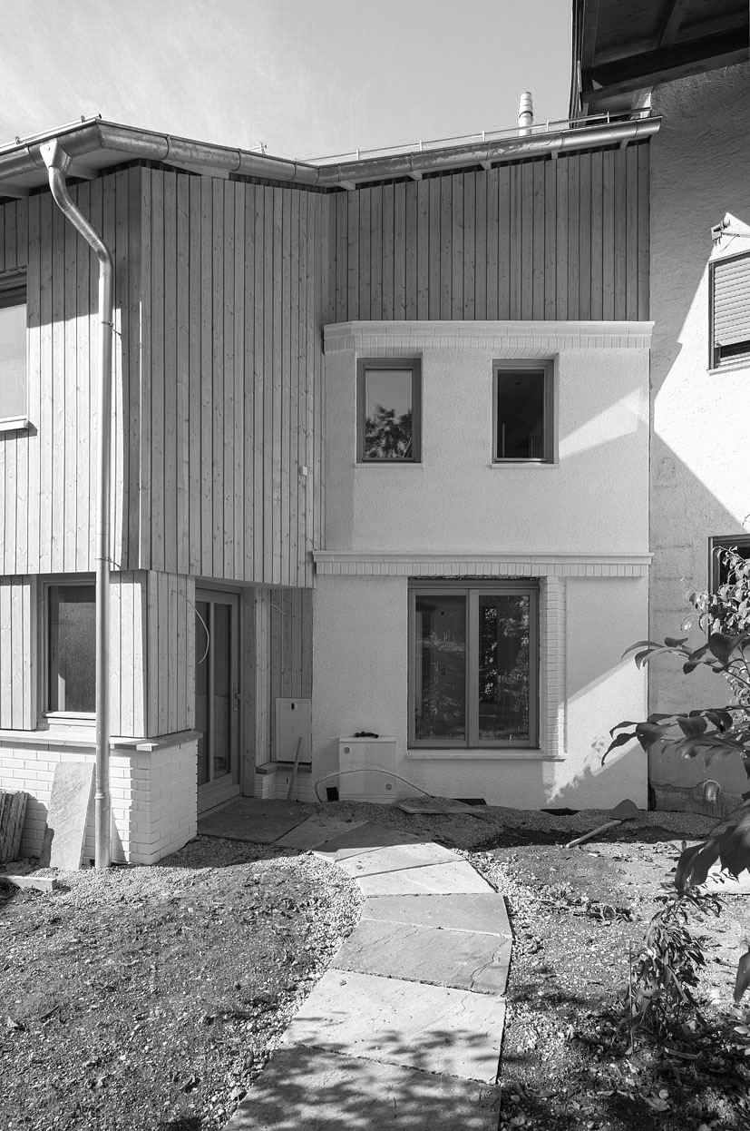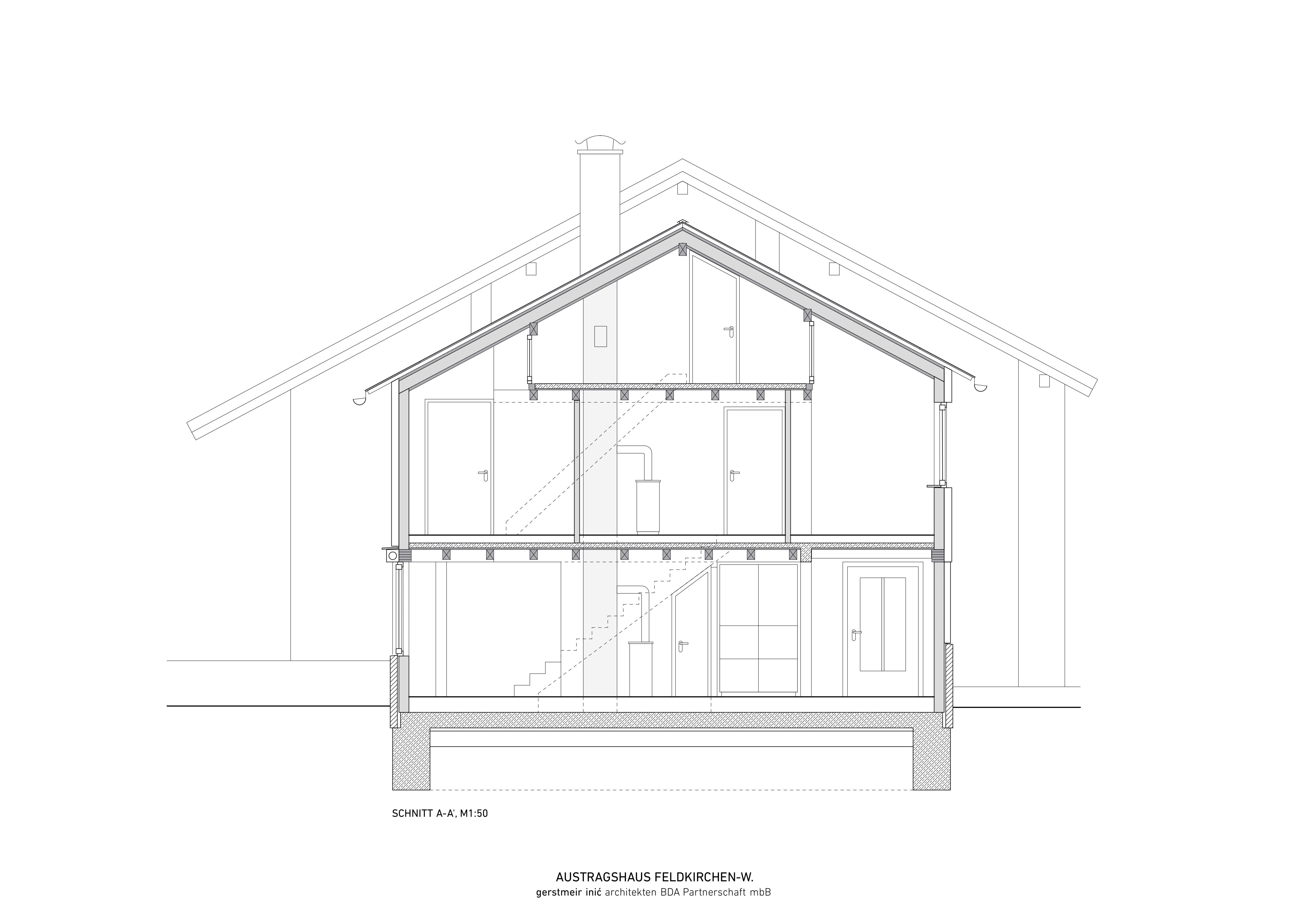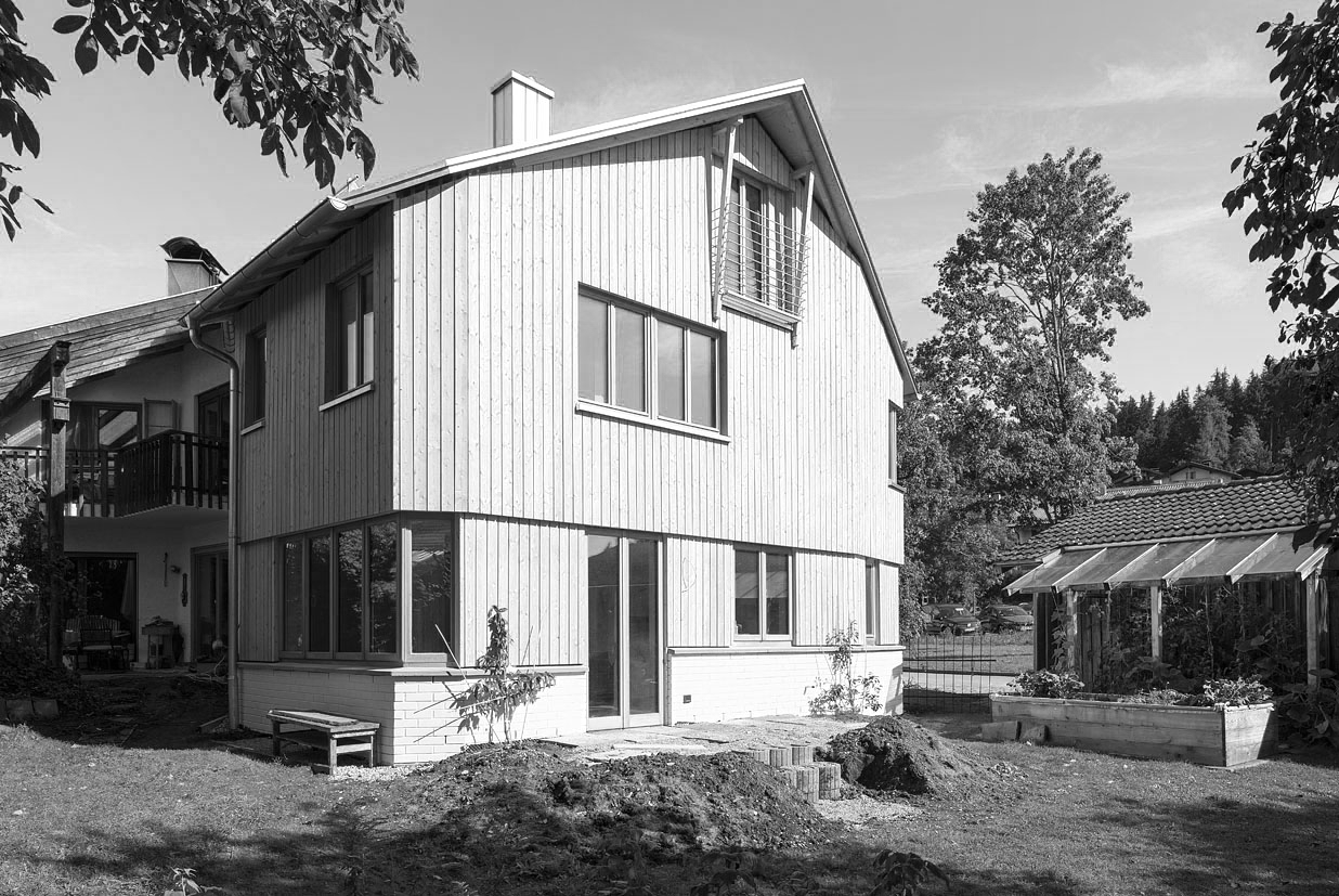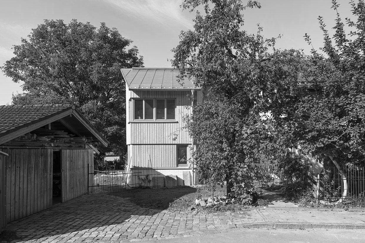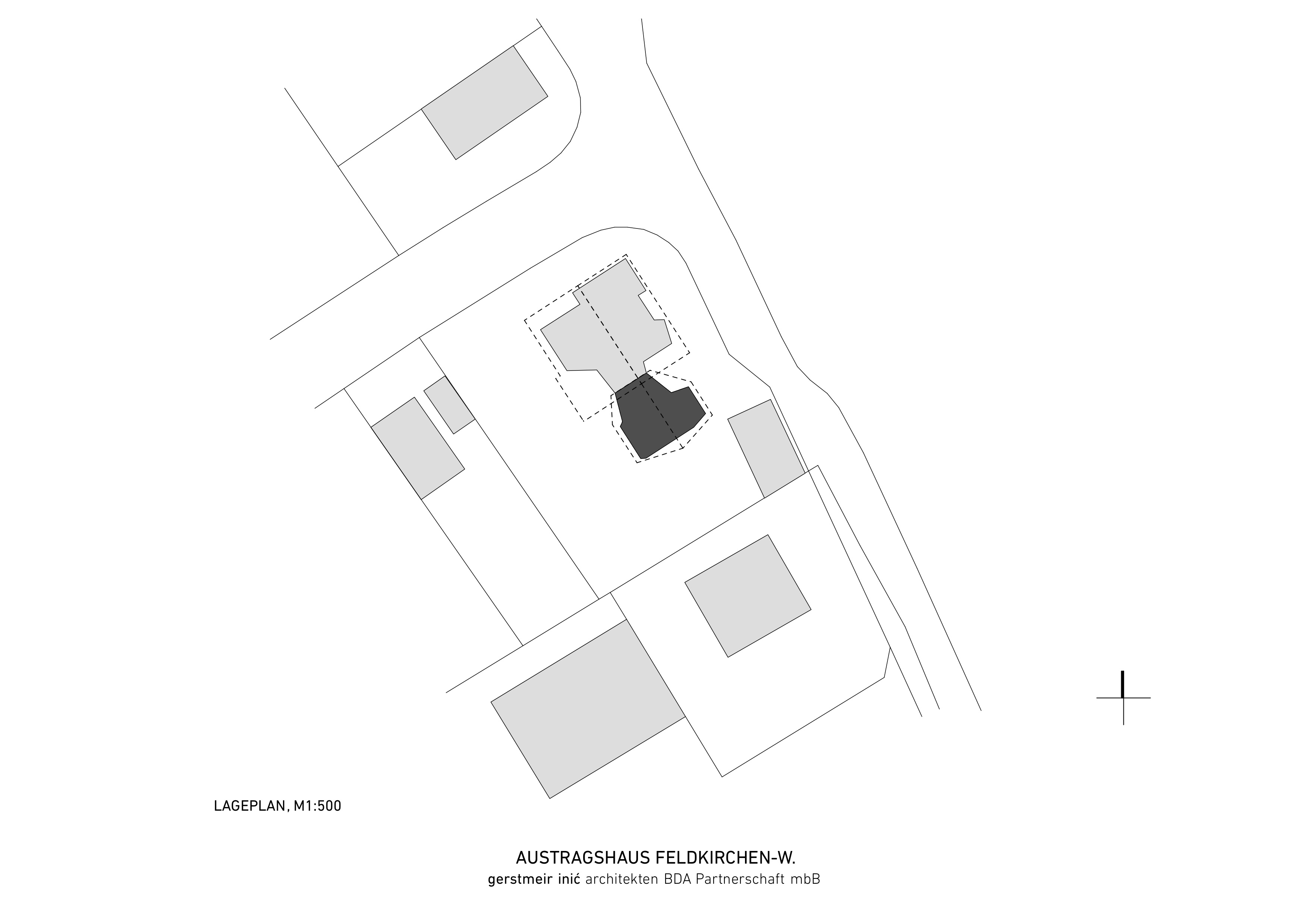Die „Alten“ übergeben an die „Jungen“. Ein klassischer Vorgang – im Bayrischen oft mit dem Bau eines Austragshauses verbunden. So auch hier: an das skurrile Einfamilienhaus aus den Siebzigern soll ein Anbau erstellt werden, mit Allem was man braucht und vor allem mit Nichts, was man nicht braucht. So ist der Entwurf eher die Suche nach einer Bedarfsvermeidung und Raumoptimierung, fast eine Etüde zum kleinen, einfachen und pointierten Haus mit allen Kniffen und Schwierigkeiten – und Freuden beim Meistern.