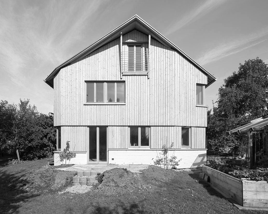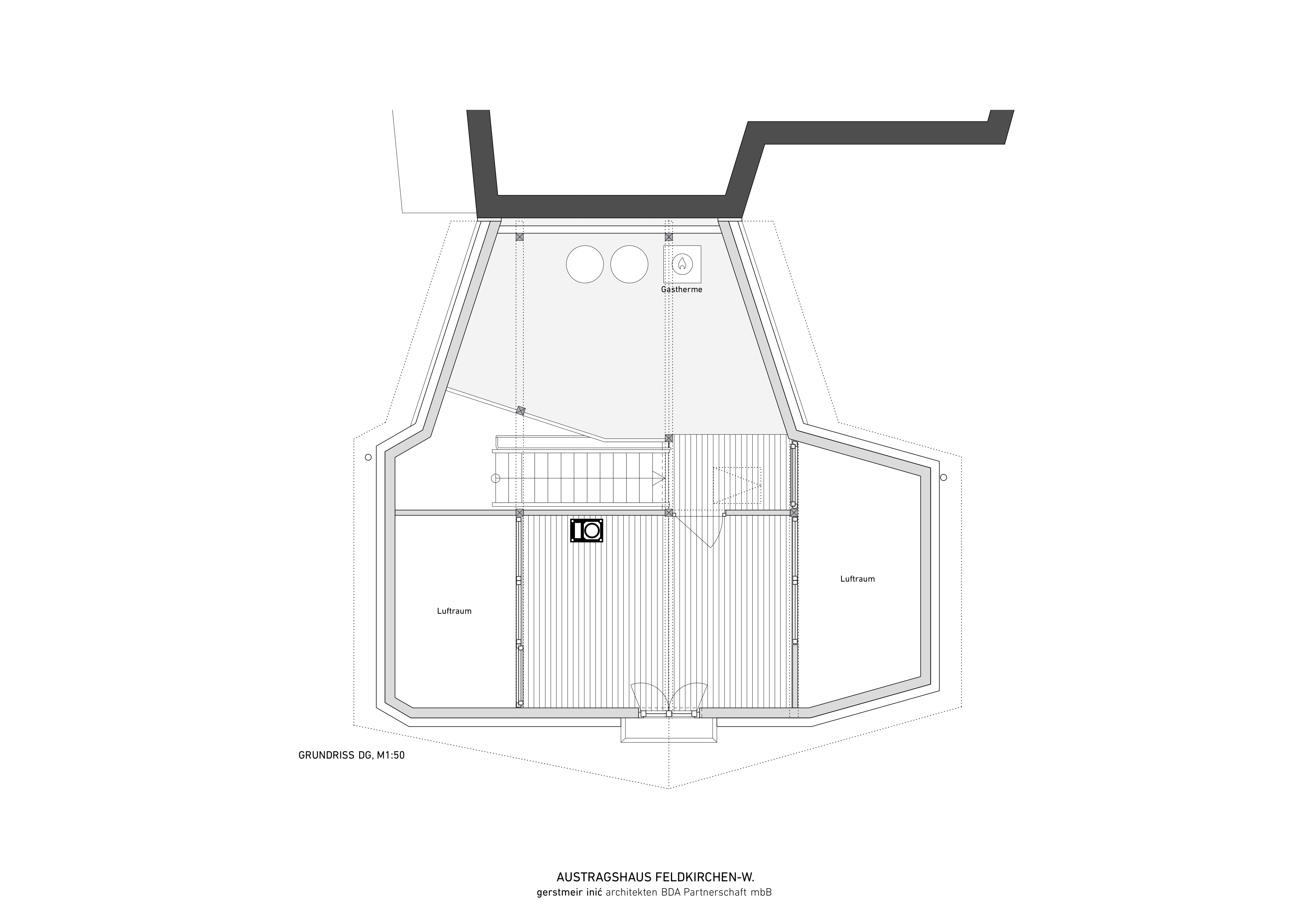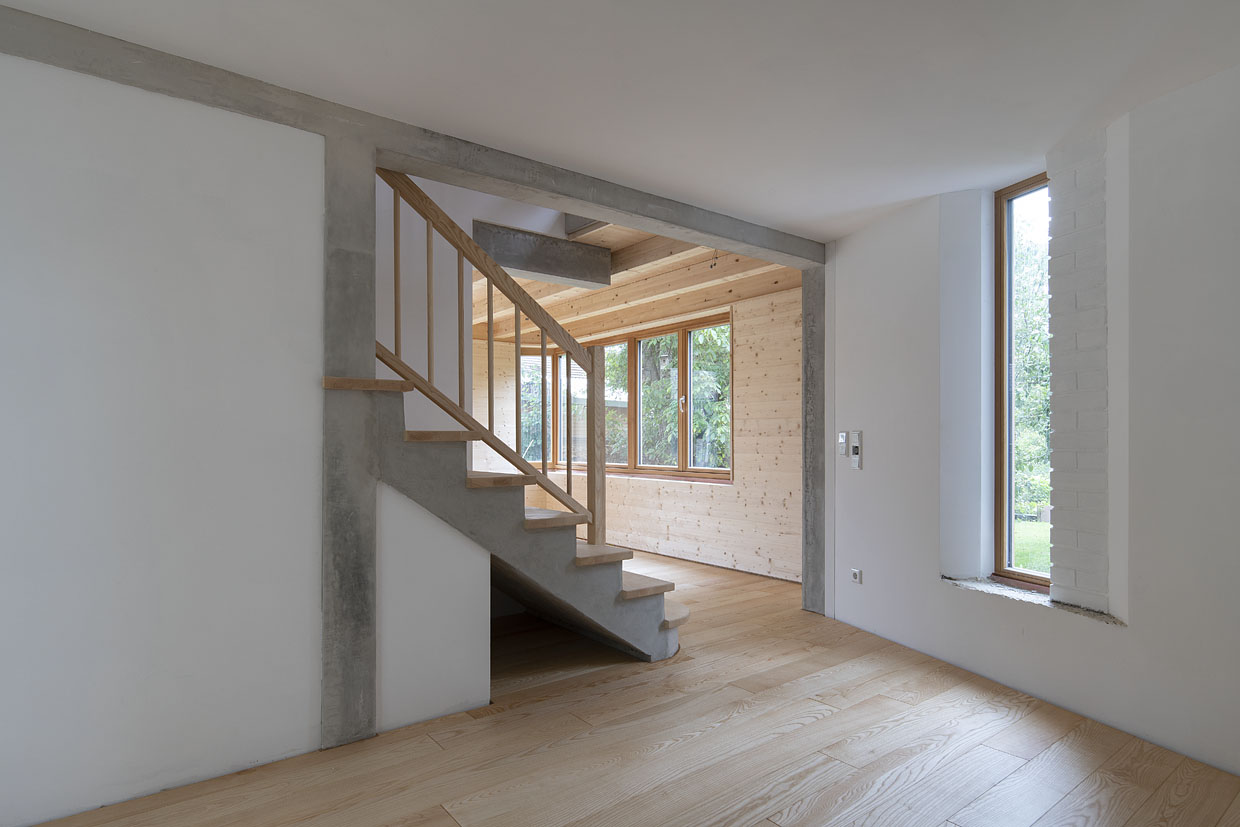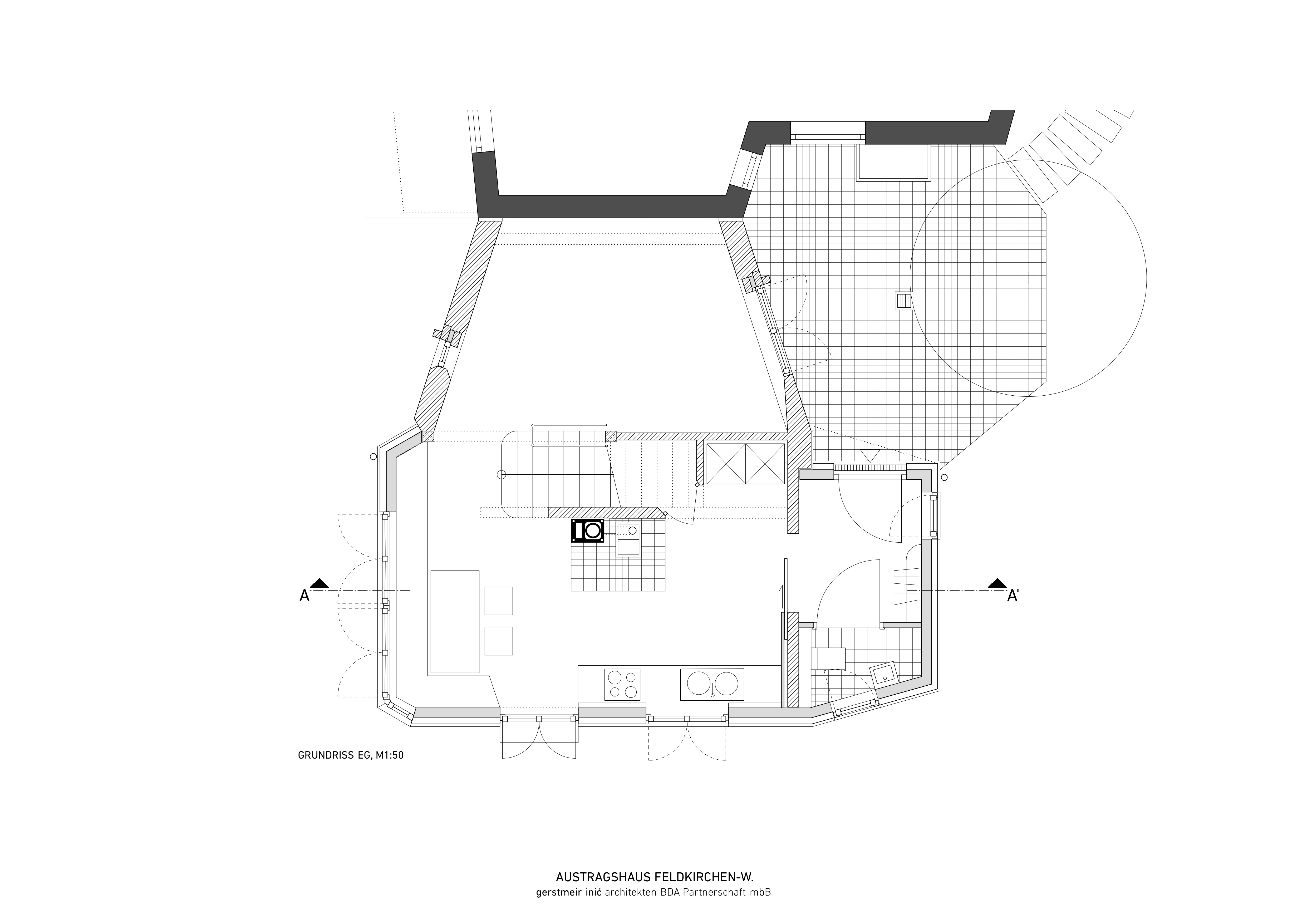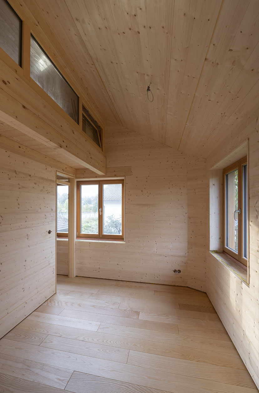 Die „Alten“ übergeben an die „Jungen“. Ein klassischer Vorgang – im Bayrischen oft mit dem Bau eines Austragshauses verbunden. So auch hier: an das skurrile Einfamilienhaus aus den Siebzigern soll ein Anbau erstellt werden, mit Allem was man braucht und vor allem mit Nichts, was man nicht braucht. So ist der Entwurf eher die Suche nach einer Bedarfsvermeidung und Raumoptimierung, fast eine Etüde zum kleinen, einfachen und pointierten Haus mit allen Kniffen und Schwierigkeiten – und Freuden beim Meistern.