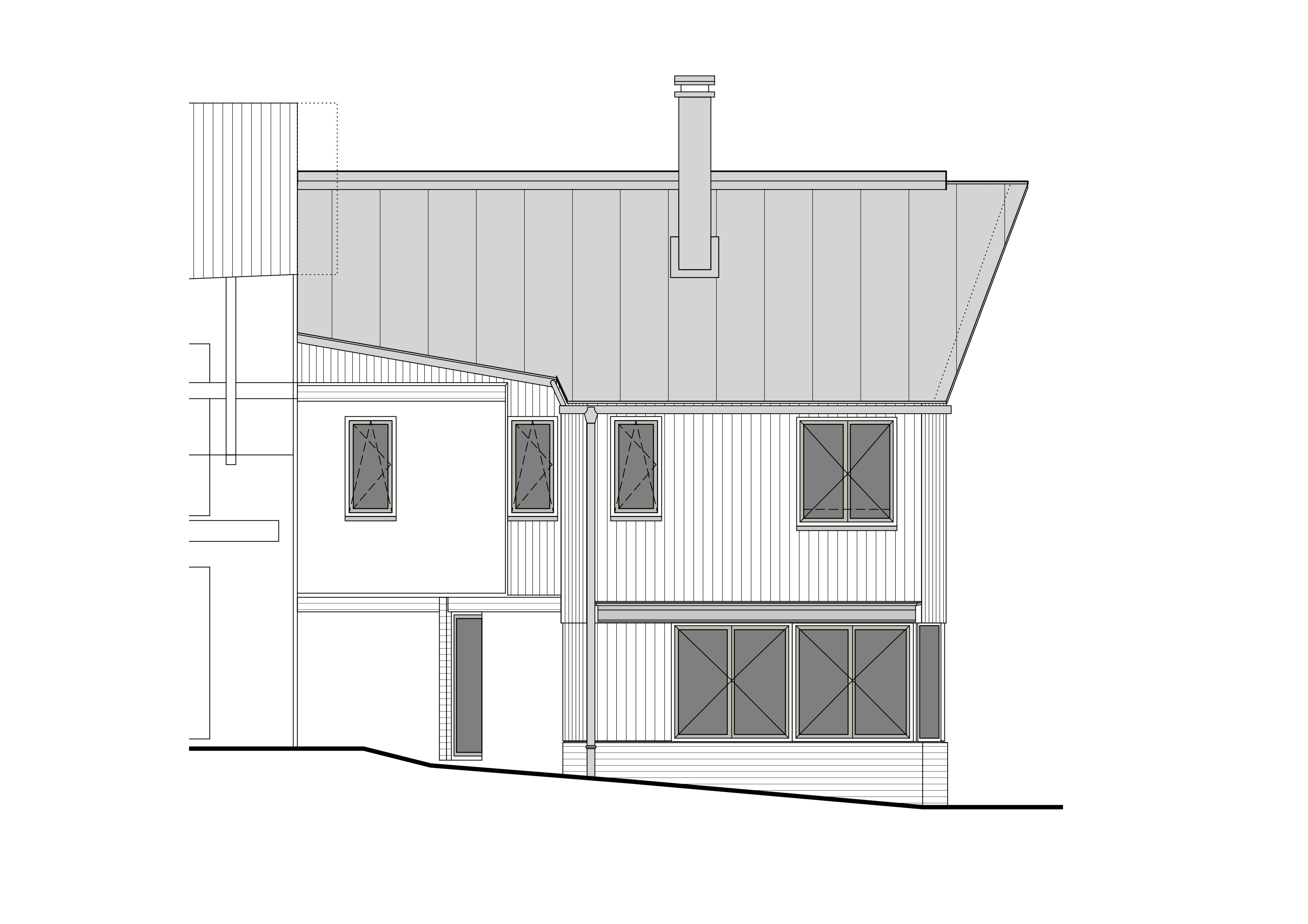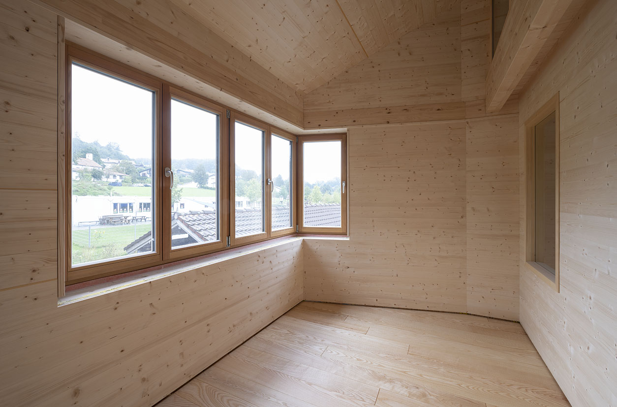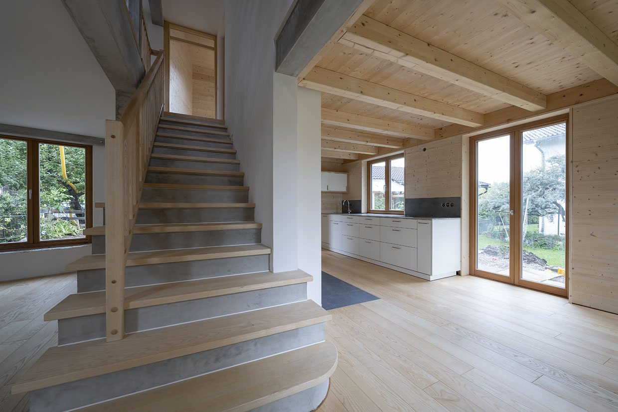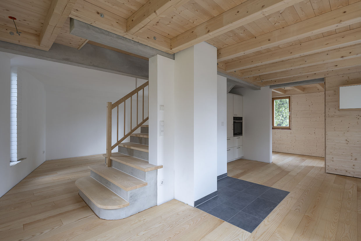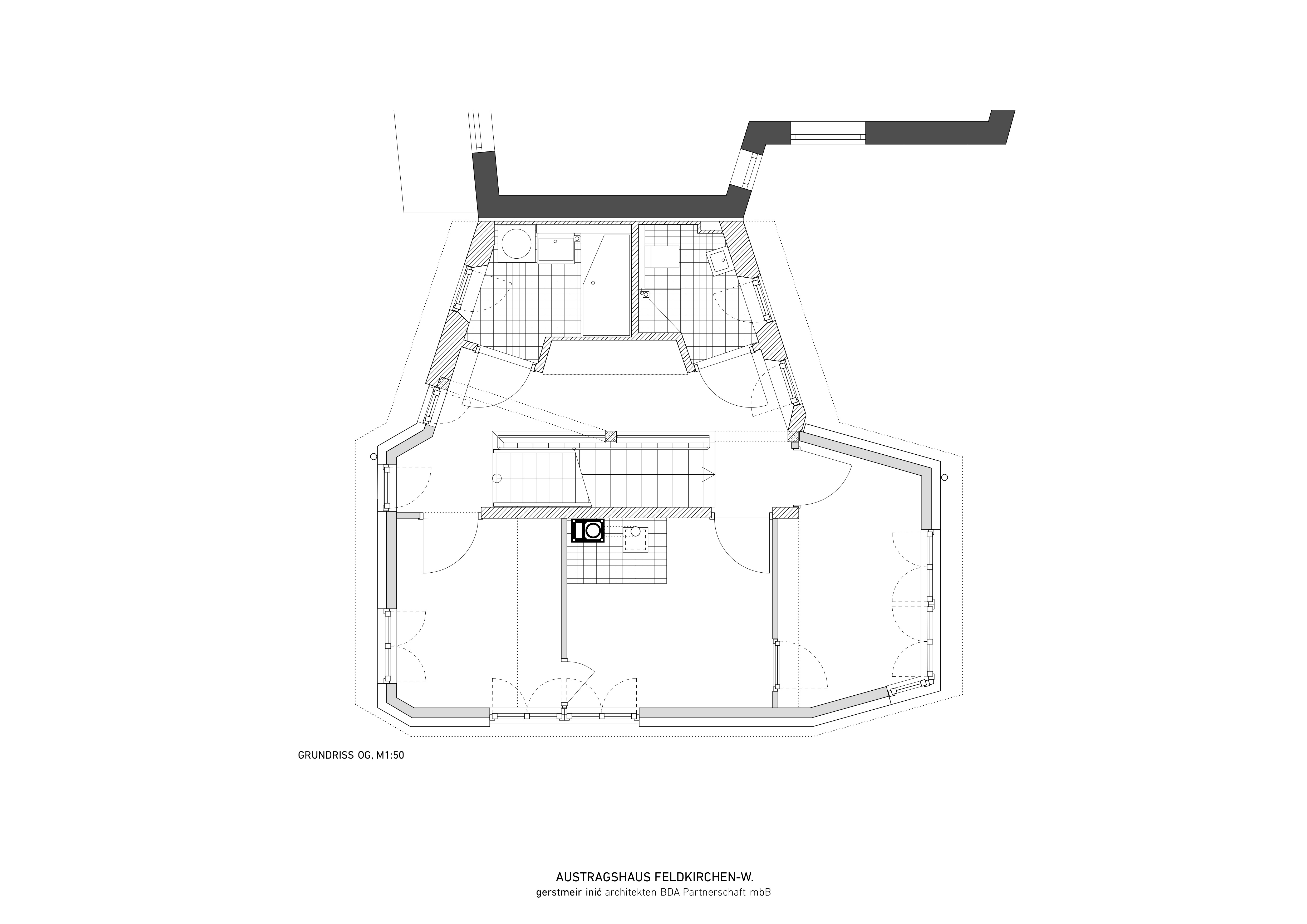 Die „Alten“ übergeben an die „Jungen“. Ein klassischer Vorgang – im Bayrischen oft mit dem Bau eines Austragshauses verbunden. So auch hier: an das skurrile Einfamilienhaus aus den Siebzigern soll ein Anbau erstellt werden, mit Allem was man braucht und vor allem mit Nichts, was man nicht braucht. So ist der Entwurf eher die Suche nach einer Bedarfsvermeidung und Raumoptimierung, fast eine Etüde zum kleinen, einfachen und pointierten Haus mit allen Kniffen und Schwierigkeiten – und Freuden beim Meistern.