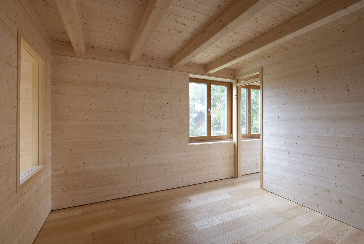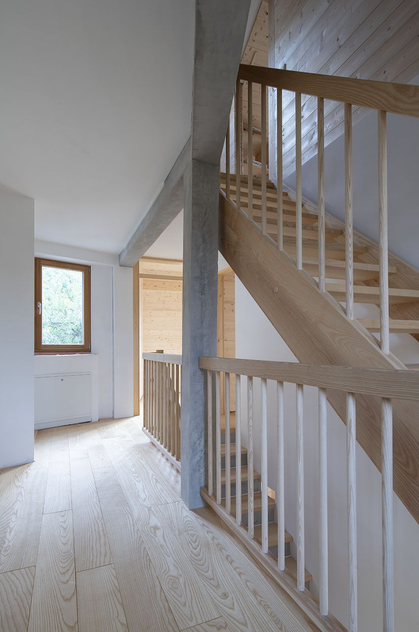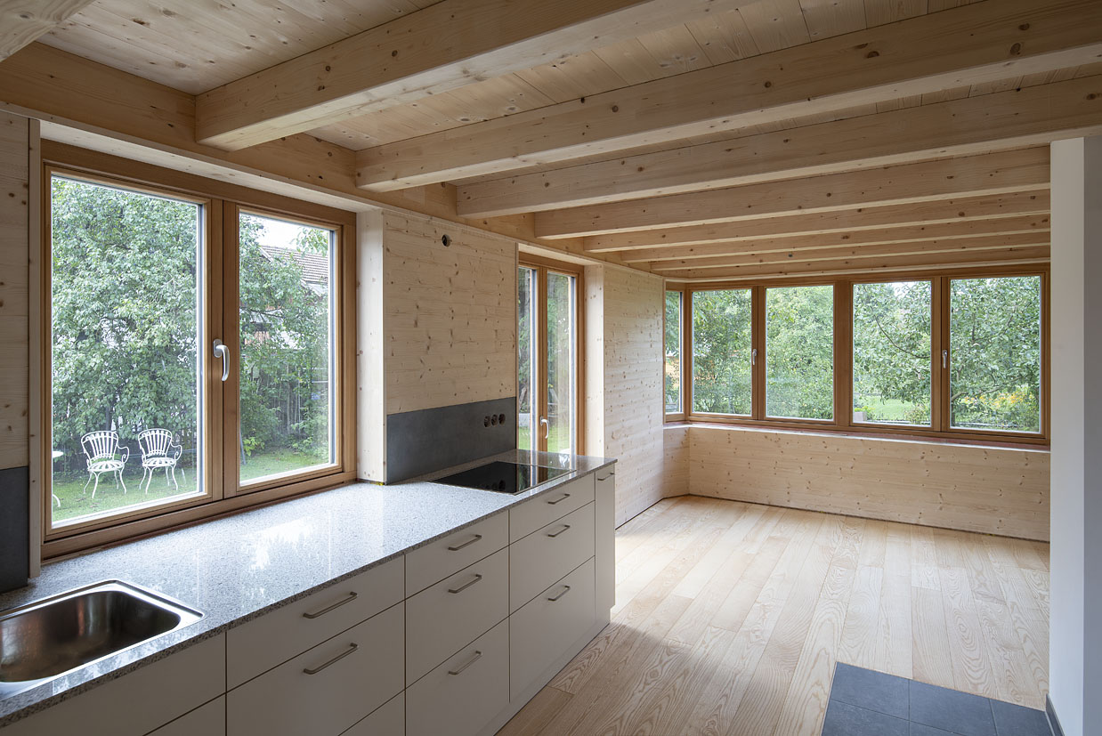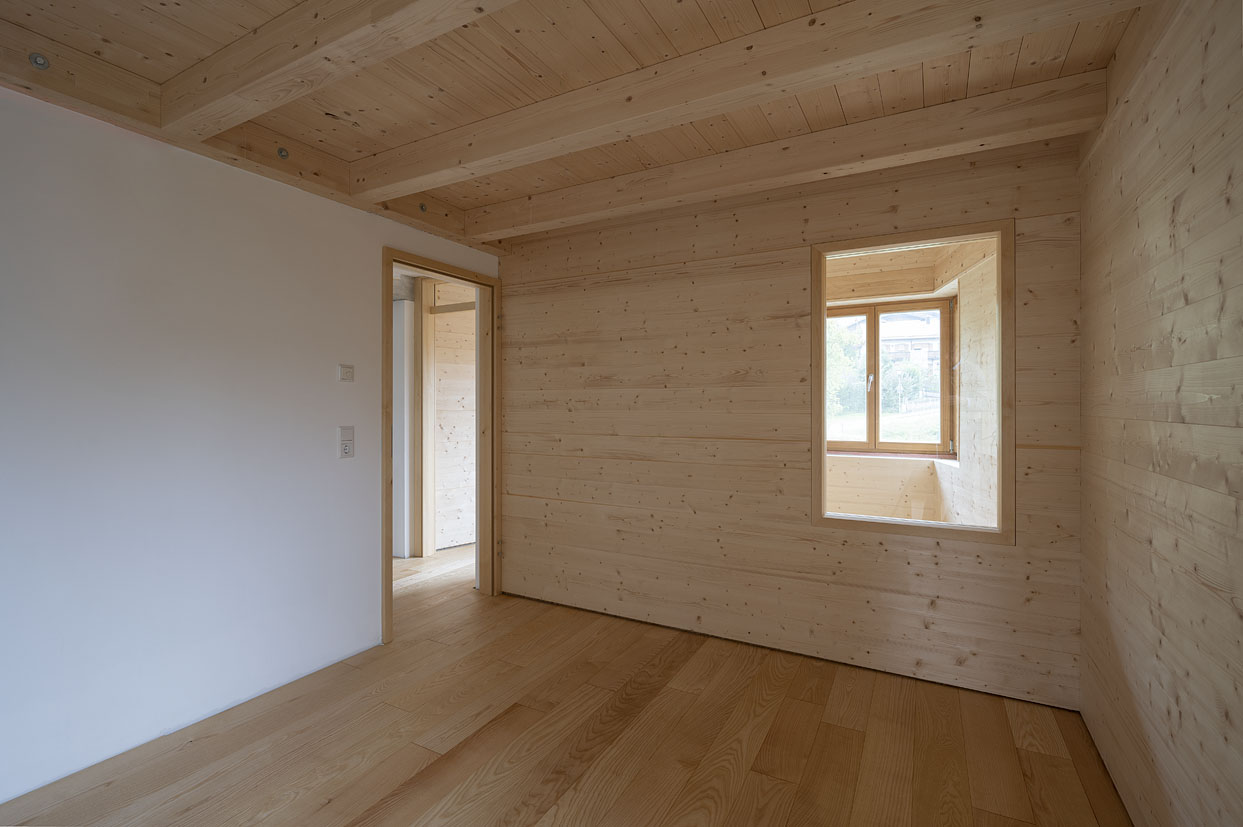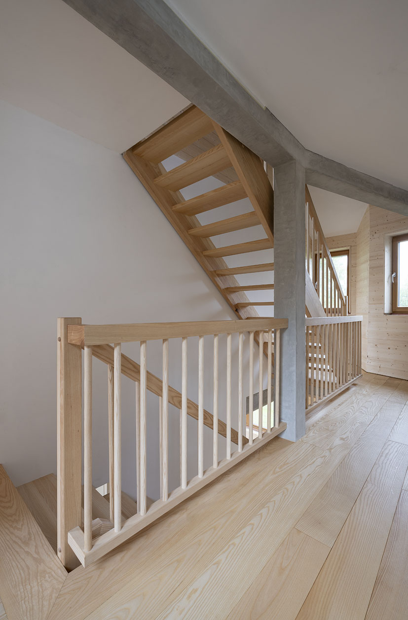 Die „Alten“ übergeben an die „Jungen“. Ein klassischer Vorgang – im Bayrischen oft mit dem Bau eines Austragshauses verbunden. So auch hier: an das skurrile Einfamilienhaus aus den Siebzigern soll ein Anbau erstellt werden, mit Allem was man braucht und vor allem mit Nichts, was man nicht braucht. So ist der Entwurf eher die Suche nach einer Bedarfsvermeidung und Raumoptimierung, fast eine Etüde zum kleinen, einfachen und pointierten Haus mit allen Kniffen und Schwierigkeiten – und Freuden beim Meistern.